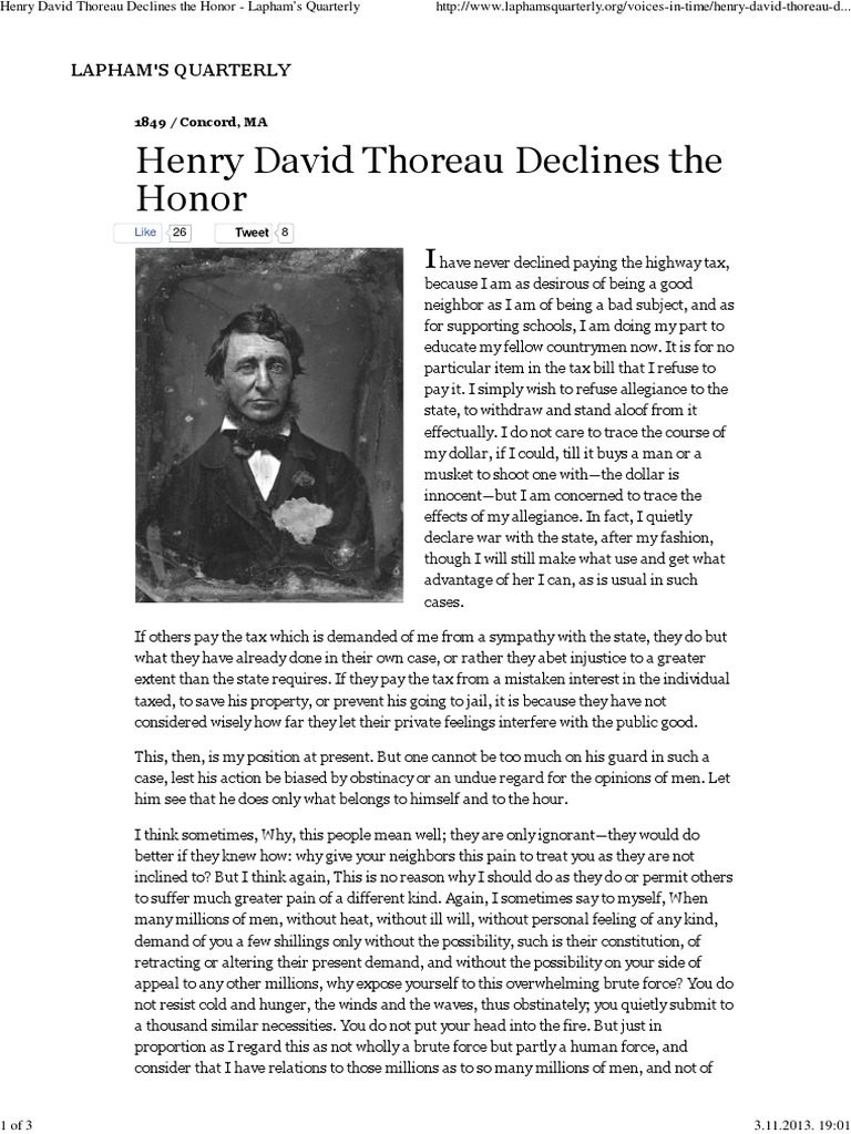 Summary Of Henry David Thoreau S Civil Disobedience Pdf